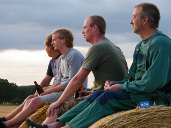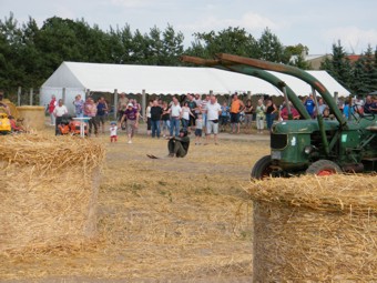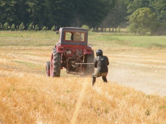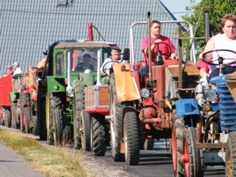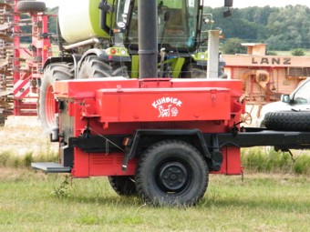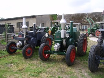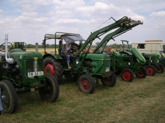 | Halb Kuhbier sitzt auf Traktoren... | ...und macht mächtig Dampf |